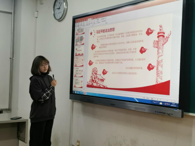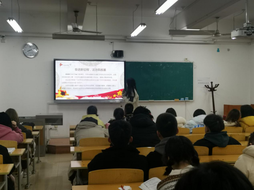 为了进一步加深同学们对十九届五中全会精神内涵的认识,让更多同学参与其中。学院各年级各班级在班委的组织下,相继开展了如法治思想小讲堂、十九届五中全会精神知识竞赛、课前三分钟等活动,使同学们在轻松的氛围中对十九届五中全会有了多角度全方位的认识,进一步引发了同学们的思考。