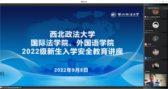 为提高2022级新生安全意识,增强自我保护能力,创建平安校园,成人电影 联合外国语学院于9月8日晚19时以线上会议的方式举行新生入学安全教育讲座。本次讲座特邀到西安市公安局长安分局的张震警官作为主讲人,党委组织员、2022级辅导员韩潇老师主持。