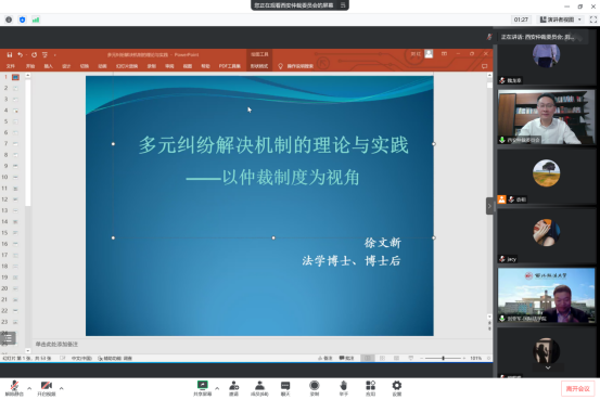 2022年11月18日晚19:30,由成人电影 、国际法研究中心、“丝绸之路”区域合作与发展法律研究院联合举办的成人电影 85周年校庆系列讲座“多元纠纷解决机制的理论与实践:仲裁的视角”在线上顺利举行。本场讲座由西安仲裁委副主任兼秘书长徐文新主讲,成人电影 院长刘亚军教授主持,成人电影 副院长张光教授、张超汉教授等100多名成人电影 师生参加了讲座。