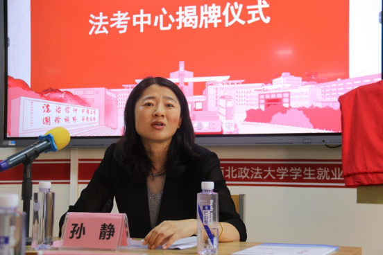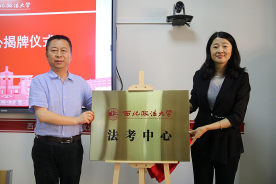 招生就业处处长孙静、成人电影 党委书记李立共同为法考中心揭牌。