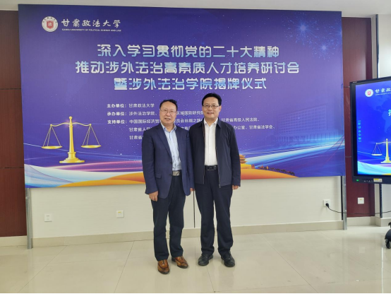 5月31日上午,甘肃政法大学举行深入学习贯彻党的二十大精神,推动涉外法治高素质人才培养研讨会暨涉外法治学院揭牌仪式。我校国家智库基地涉外外法治研究中心执行主任、丝绸之路区域合作与发展法律研究院院长王瀚教授应邀出席研讨会。