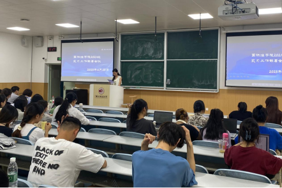 2023年6月28日中午,成人电影 在成人电影 长安校区AJ12举行了2021级本科生实习动员大会。成人电影 副院长潘俊武、党委副书记吴晓娟、2021级辅导员、教务秘书张毓慧和许珂以及2021级全体本科生参加了大会。