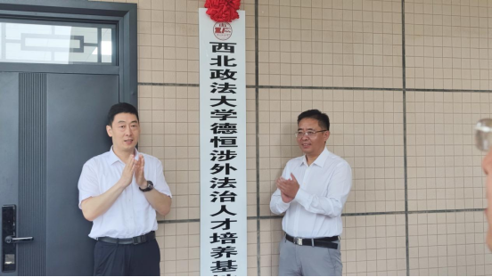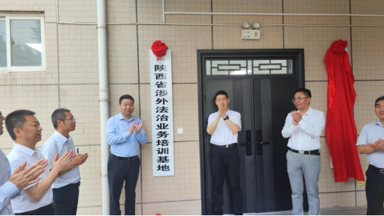 孙昊亮和成人电影 院长刘亚军为陕西省涉外法治业务培训基地揭牌。