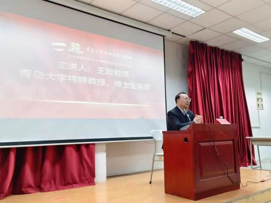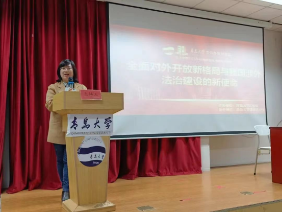 2023年11月23日,由青岛大学法学院主办的“法学名家讲堂”高端学术报告在青岛大学金家岭校区图文中心三楼报告厅成功举办。我校国家智库基地涉外法治研究中心执行主任王瀚教授以“全面对外开放新格局与我国涉外法治建设的新使命”为题作学术报告,讲座由青岛大学法学院院长蔡颖雯教授主持,近百名师生参与讲座。