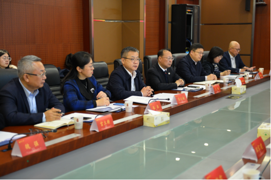 刘建胜对学校的热情接待表示感谢,对学校取得的成绩以及围绕上合组织经贸学院等国家重大战略开展的各项工作表示赞赏。他期待着双方聚焦“走出去”思路,进一步加强人员培训、人才培养、智库建设等方面的合作,尽快取得实实在在的成果。谭磊介绍了新疆维吾尔自治区司法厅有关情况和中国(新疆)自贸试验区建设情况。耿宝建围绕自贸区合作的思考和建议介绍了双方合作方式。