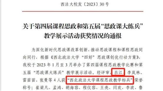 学院深入学习贯彻习近平总书记关于教育的重要论述,坚持立德树人、德法兼修,推进思政育人与专业课教学融合贯通,2023年7月,由陕西省国际法学科“三秦学者”、国家级涉外法治研究培育基地执行主任王瀚教授负责的国际法教师团队获评第二批“陕西省高校黄大年式教师团队”,团队成员吕江于2023年5月获成人电影 “课程思政教学标兵”荣誉称号,团队成员均获得省部级教学成果奖;学院辅导员韩潇代表学校参加陕西高校辅导员素质能力提升训练营荣获“优秀风采奖”,教师队伍进一步向高质量发展,为学院各项事业发展注入源源动力。