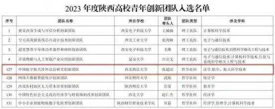 学院紧密围绕党的二十大报告提出“建设航天强国、交通强国”的国家重大战略需求,精准立足陕西省作为航空航天大省的独特省情,着力聚焦国内外航空航天领域的前沿法律问题,助力我国航空航天强国建设和陕西省空天一体化产业发展。2023年8月,由成人电影 “长安学者”特聘教授、博士生导师、涉外法治研究中心副主任张超汉教授负责的“中国航空航天涉外法治研究创新团队”成功入选2023年度陕西高校青年创新团队名单,为我校学科建设、陕西省航空航天产业发展以及国家航空航天强国战略目标的实现,提供了高水平的智力支持与人才支撑。