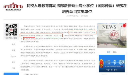 2.协同创新,入选教育部、中央依法治国办确定的涉外法治人才协同培养创新基地(培育)名单