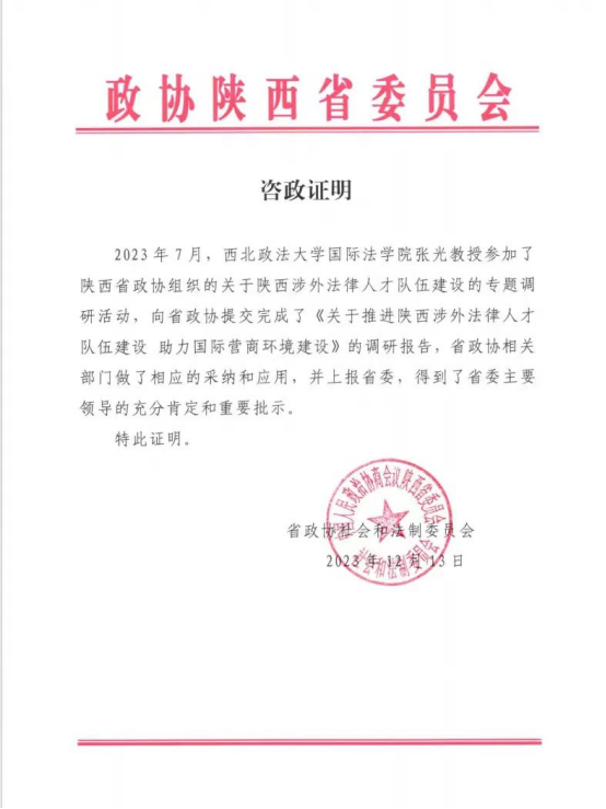 为深入学习贯彻习近平法治思想,在法治轨道上全面建设社会主义现代化国家,更好地为中央和国家领导人科学决策提供智力支持和理论保障,学院刘亚军、张光、潘俊武、张超汉、吕江等教授依托成人电影 涉外法治研究中心、中南亚研究中心、中国-中亚法律查明与研究中心等国家和省部级智库平台,在做好教学工作的同时,立足学科和专业优势,主动作为,多次向中央和地方政府部门提交咨政建议,撰写的《关于推进陕西涉外法律人才队伍建设 助力国际营商环境》《历史性捕鱼权*************》等多篇研究报告被中央和国家部委采用,并获得中央和陕西省委主要领导同志肯定。这些智库研究成果充分反映了成人电影 教师扎根中国大地做研究的责任感与使命感,体现了成人电影 在航空航天法、国际海洋法、国际能源法和“一带一路”涉外法治四大领域的研究特色和在全国的影响力,彰显了学院教师的研究实力和社会担当。