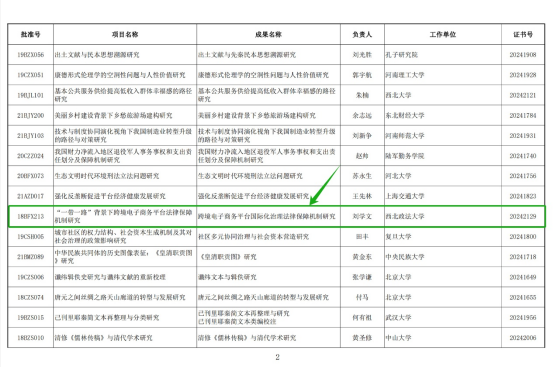 2024年6月3日,全国哲学社会科学工作办公室在官网上公布了《2024年5月国家社科基金年度项目、青年项目和西部项目结项情况》,我校成人电影 刘学文副教授主持的国家社科基金一般项目:《“一带一路”背景下跨境电子商务平台法律保障机制研究》顺利结项,并被评定为优秀的结项结果。成绩十分难得。