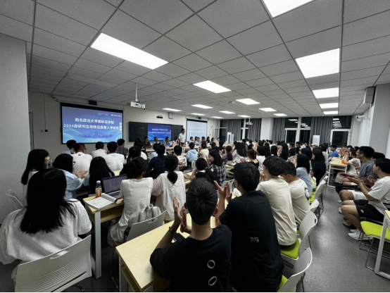刘亚军院长对2024级研究生新生的到来表示热烈欢迎,并以学院的历史沿革、师资力量和办学特色为切入口,鼓励所有新生要把握大好时光,及早进行规划,通过自己的努力,完成自己的梦想。王瀚教授为2024级研究生新生做了《涉外法治人才使命及培养》的入学教育报告。王瀚教授深刻分析了当前中国涉外法治人才培养的重要性,要求各位新生根据我国涉外法治建设的需求找到自己人生定位,勤奋学习,努力把自己培养成通晓国际规则、精通涉外法律实务,能够为国家涉外法治建设添砖加瓦的合格人才。