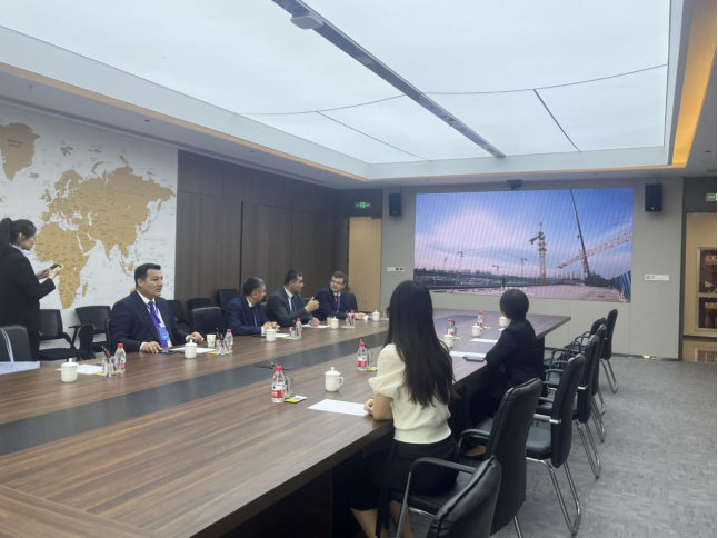 最后,访问团来到中欧班列西安集结中心。在中铁联集西安中心站,车站海关马越副关长热情接待了来自乌兹别克斯坦的客人,向乌方代表详细介绍了中心建设和运营情况,通过精确的数据展示了中欧班列在共建“一带一路”过程中的关键作用。马越副关长还重点介绍了我国与包括乌兹别克斯坦在内的中亚国家之间的贸易往来,中欧班列已经成为连接中国与中亚国家贸易合作的重要纽带。