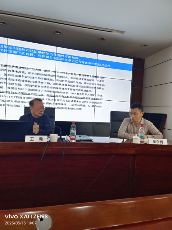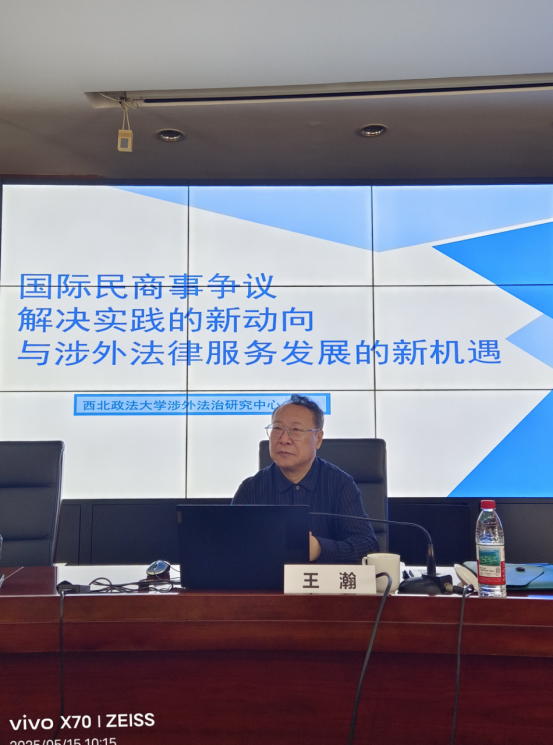 2025年5月15日上午,我校国际法学科带头人、国家智库研究基地执行主任、首席专家王瀚教授应邀为上海政法学院做主题为《国际民商事争议解决实践的新动向与涉外法律服务业发展的新机遇》。本次讲座由上海政法学院人工智能法学院、成人电影 ,上海市法学会海洋法治研究会、上海市法学会人工智能法治研究会及上海市法学会“一带一路”法律研究会联合主办。人工智能法学院院长杨华教授主持讲座,成人电影 副院长吴永辉教授与谈,近百名师生现场聆听讲座。