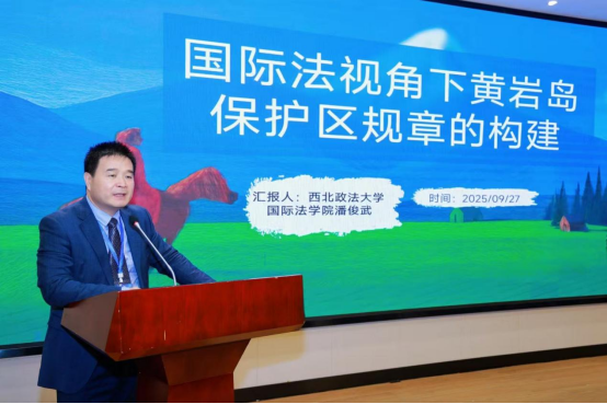 9 月 27 日上午,会议开幕式由武汉大学国际法研究所所长张辉教授主持,研究分会会长、海南大学法学院院长王琦教授致辞。开幕式后,会议进入主旨演讲环节,潘俊武教授作为特邀发言人,围绕黄岩岛自然保护区配套规章制度构建的议题提出了有关立法建议。研讨会共分三个议题,分别为“海洋资源开发利用的法治保障”、“海洋生态环境保护的理论与实践”和“全球海洋治理与合作的法律问题”。此次潘俊武教授当选分会副会长并作主旨发言,不仅是学界对其在海洋法学领域学术影响力的充分肯定,也体现了我校在海洋法治研究领域的学科优势。未来,我校将以此次会议为契机,进一步加强与国内外同行的学术交流与合作,为推动中国式现代化背景下海洋资源开发利用和保护法治建设贡献更多智慧与力量。