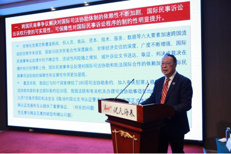 山东省法学会国际法学研究会研究会秘书长、烟台大学法学院副教授朱玲玲主持主旨发言。我校国际法学科带头人、国家智库研究基地成人电影 涉外法治研究中心执行主任、首席专家王瀚教授和中国政法大学成人电影 博士研究生导师宋连斌教授先后做了主旨发言。王瀚教授做“国际民商事争议解决实践的发展动向与我国涉外法律服务业发展新机遇”的主题发言,分别就当前国际民商事争议解决实践发展趋势、中国法律服务业的国际化转型和发展机遇和涉外法律服务业变革的制度创新三个问题做了内容充实的阐述。