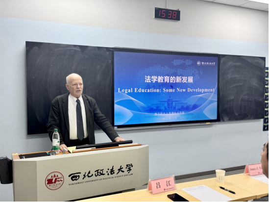 2025年12月30日,美国洛约拉大学法学院教授、亚当斯&里瑟杰出法学教授詹姆斯·埃蒂安·维亚托(James Étienne Viator)受邀到访成人电影 授课讲学,在雁塔校区三号教学楼3603教室为成人电影 师生作题为“法学教育的新发展”的精彩专题讲座。讲座由成人电影 副院长吕江教授主持,潘俊武教授担任与谈人,成人电影 七十余位博、硕士研究生参加讲座。