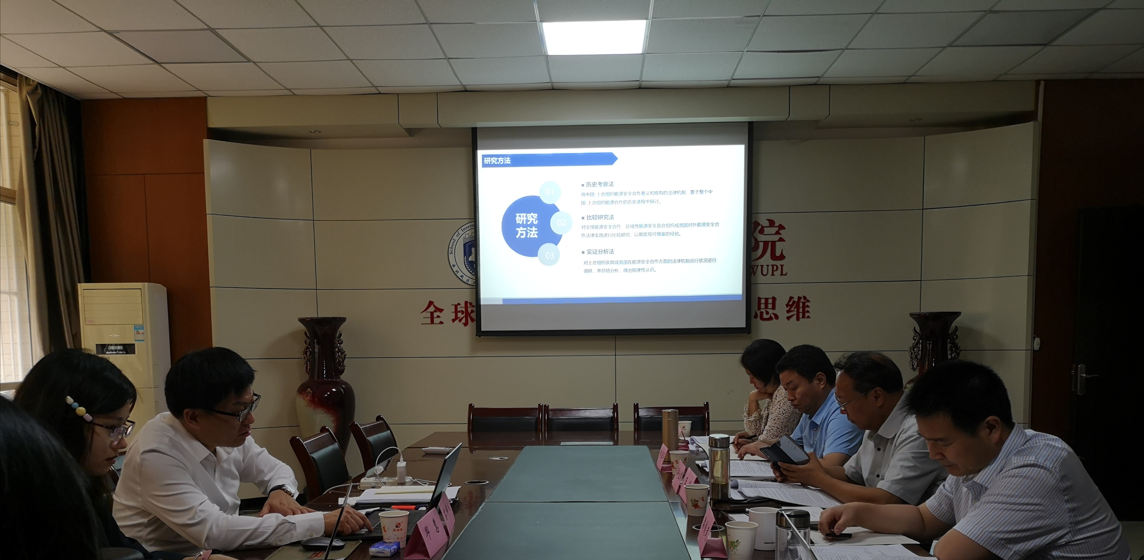 博士生陈婉姝的选题为《中国国际商事法庭运行机制问题研究》、博士生邱慧的选题为《上海合作组织能源合作法律问题研究》、博士生时杜娟的论文题目为《国际枢纽机场建设的政策促进与法律规制研究》,三位博士生主要从论文的选题背景、写作意义、国内外研究现状、内容结构、创新点等方面向委员会进行了汇报,回答了各位委员的提问,并认真听取了答辩委员会的意见。最后经各自答辩委员会五名委员认真讨论和无记名投票表决,一致同意陈婉姝、邱慧通过博士学位论文开庭答辩,一致同意时杜娟通过博士学位论文预答辩。