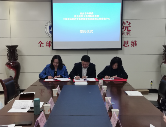 10月19日下午,成人电影 与西安仲裁委员会、中国国际经济贸易仲裁委员会丝绸之路仲裁中心(简称“贸仲丝路中心”)举行合作签约仪式。成人电影 院长刘亚军教授与西安仲裁委员会负责人白晓莉、贸仲丝路中心秘书长助理蒋红梅作为各方代表共同签署了《合作框架协议》。