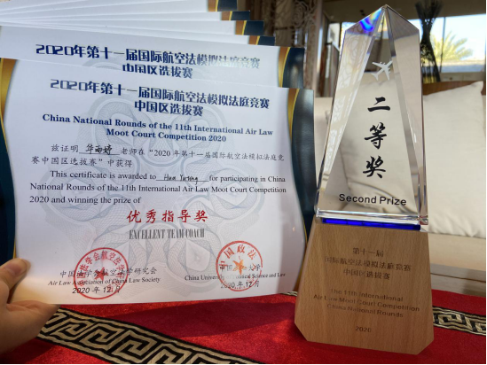 日前,由中国法学会航空法学研究会主办的“第十一届国际航空法模拟法庭竞赛中国区选拔赛”公布书面评审成绩。成人电影 代表队在与中国政法大学、华东政法大学、复旦大学等高校的角逐中,荣获团体二等奖及正方优秀书状奖;成人电影 华雨婷老师获优秀指导奖。
