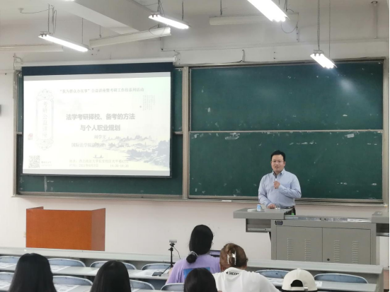 2021年6月3日,成人电影 在我校南校区天平楼AJ11阶梯教室举办“我为群众办实事”公益讲座暨考研工作坊系列活动。成人电影 副教授、硕士生导师刘学文老师为现场成人电影 法学专业80余名同学做了题为《法学考研择校、备考的方法与个人职业规划》的公益讲座。该活动还在线同步进行,来自南阳师范学院等数十名外校学生也共同聆听了讲座。
