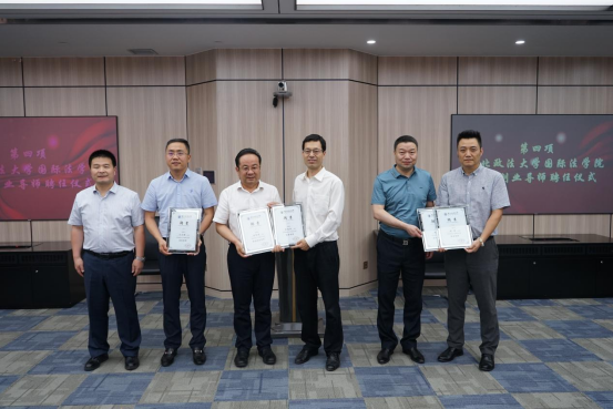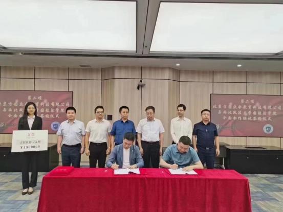 李玉朝副校长为北京方圆众合教育科技有限公司和北京安理(西安)律师事务所授予“成人电影 实践教学基地”牌匾。刘亚军和北京方圆众和教育科技有限公司CEO李曰龙、万商天勤律师事务所主任卫永鹏分别签署合作协议并接受捐赠。刘亚军、潘俊武、张光为21名校友颁发“成人电影 就业创业导师”、“成人电影 实务导师”聘书。