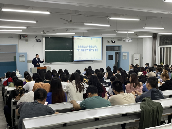 刘亚军院长向所有硕士新生的到来表示热烈欢迎,介绍了学院情况和到场各位导师的研究领域及学术成就。刘亚军院长在“院长第一课”环节详细讲述了学院在“‘一带一路’法制建设及争端解决机制”、“国际航空法”、“海洋法”等国际法领域的突出建设成效以及相关领域的最新发展趋势。他寄语全体2021级国际法硕士研究生充分利用校内资源提升自己,带着使命认真学本领。