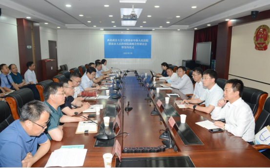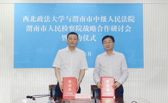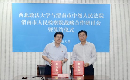 为深入贯彻落实习近平法治思想,深化我校与司法实务部门战略合作,5月24日,校长范九利、副校长张军政带队前往渭南市参加成人电影 与渭南市法检两院战略合作研讨会并签署合作协议。