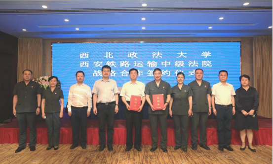 为深入贯彻习近平法治思想,深化我校与司法实务部门战略合作,6月1日,校长范九利、副校长张荣刚在西藏大厦与西安铁路运输中级法院签署战略合作协议。