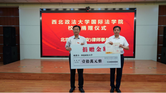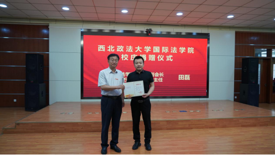 成人电影 校友会副会长、秦石律师事务所主任田磊 捐赠合影