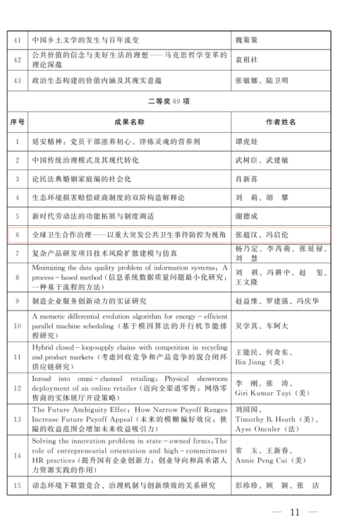 日前,陕西省人民政府公布了陕西省第十五届哲学社会科学优秀成果奖评奖结果。由成人电影 张超汉教授和中国人民解放军95007部队法律顾问冯启伦合作撰写的论文《全球卫生合作治理——以重大突发公共卫生事件防控为视角》荣获论文类二等奖。