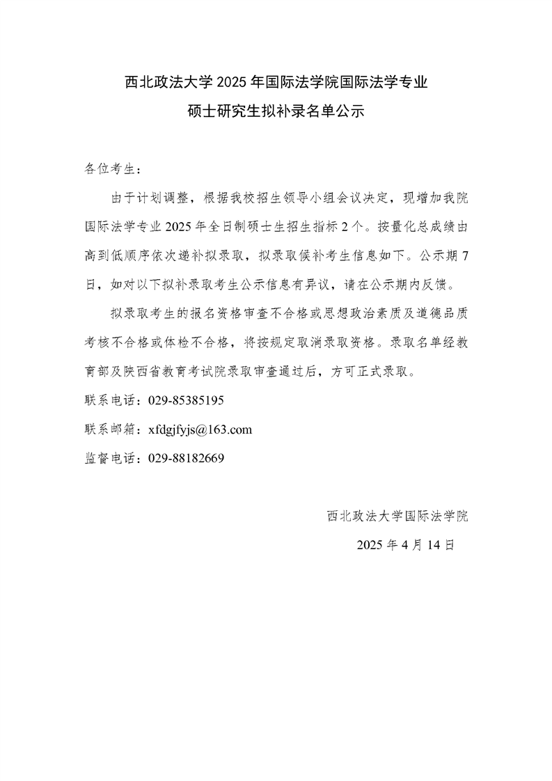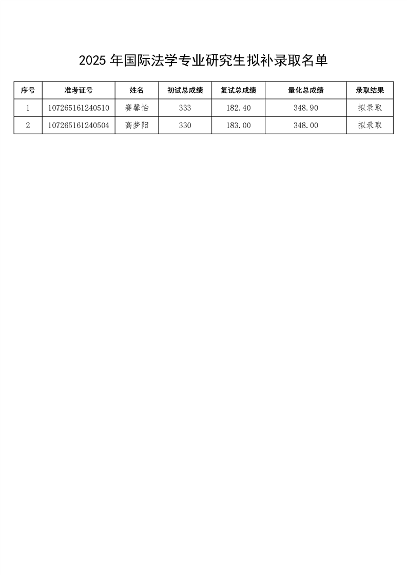 成人电影 2025年成人电影 国际法学专业硕士研究生拟补录名单公示