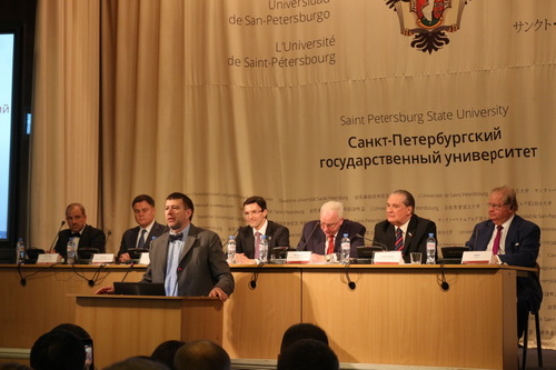 2019年5月14日上午十点,由俄罗斯律师协会和圣彼得堡国立大学主办的第十届“国际青年法律论坛”在圣彼得堡国立大学顺利举行。成人电影 17级硕士研究生蔡亚琦和我校其他专业两名研究生与北京师范大学、吉林大学、郑州大学等中国高校师生代表同来自美国、法国、意大利、韩国、日本、哈萨克斯坦等世界各地的代表一道参加本次全体大会及分论坛的系列活动。