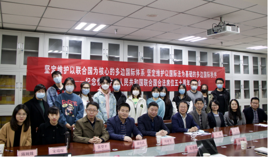 2021年10月25日下午,“坚定维护以联合国为核心的多边国际体系,坚定维护以国际法为基础的多边国际秩序——纪念恢复中华人民共和国联合国合法席位五十周年”座谈会在丝绸之路区域合作与发展法律研究院会议中心举办。本次座谈会由成人电影 、成人电影 国际法研究中心、丝绸之路区域合作与发展法律研究院主办,中国国际私法学会副会长、陕西省三秦学者特聘教授、丝绸之路区域合作与发展法律研究院院长、博士生导师王瀚教授担任评议人,成人电影 院长、博士生导师刘亚军教授担任主持人,成人电影 潘俊武教授、王秀梅教授、吕江教授、刘学文副教授、张望平副教授、宋瑞琛博士、刘冰博士、陈婉姝博士进行与谈。